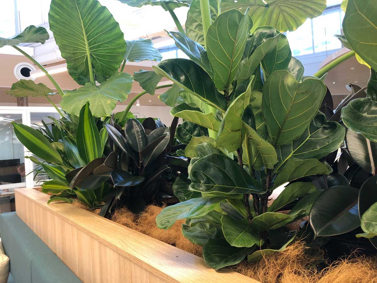 “I recently installed some lovely plants in the office of a very trendy, up-and-coming business in Manly. The office manager chose matte metallic look pots which look fabulous with their wooden floors and charcoal carpet. They asked for lush plants, so very much like the beautiful Rhapis Palms, Ficus Burgundy and Monsteras which now brighten up the office area and help clean their office air. A lovely Strelitzia (Bird of Paradise) welcomes their visitors at the entrance. It was great to have so many appreciative comments from the staff and I could tell they felt that, by having office plants, their management cared about their wellbeing.”