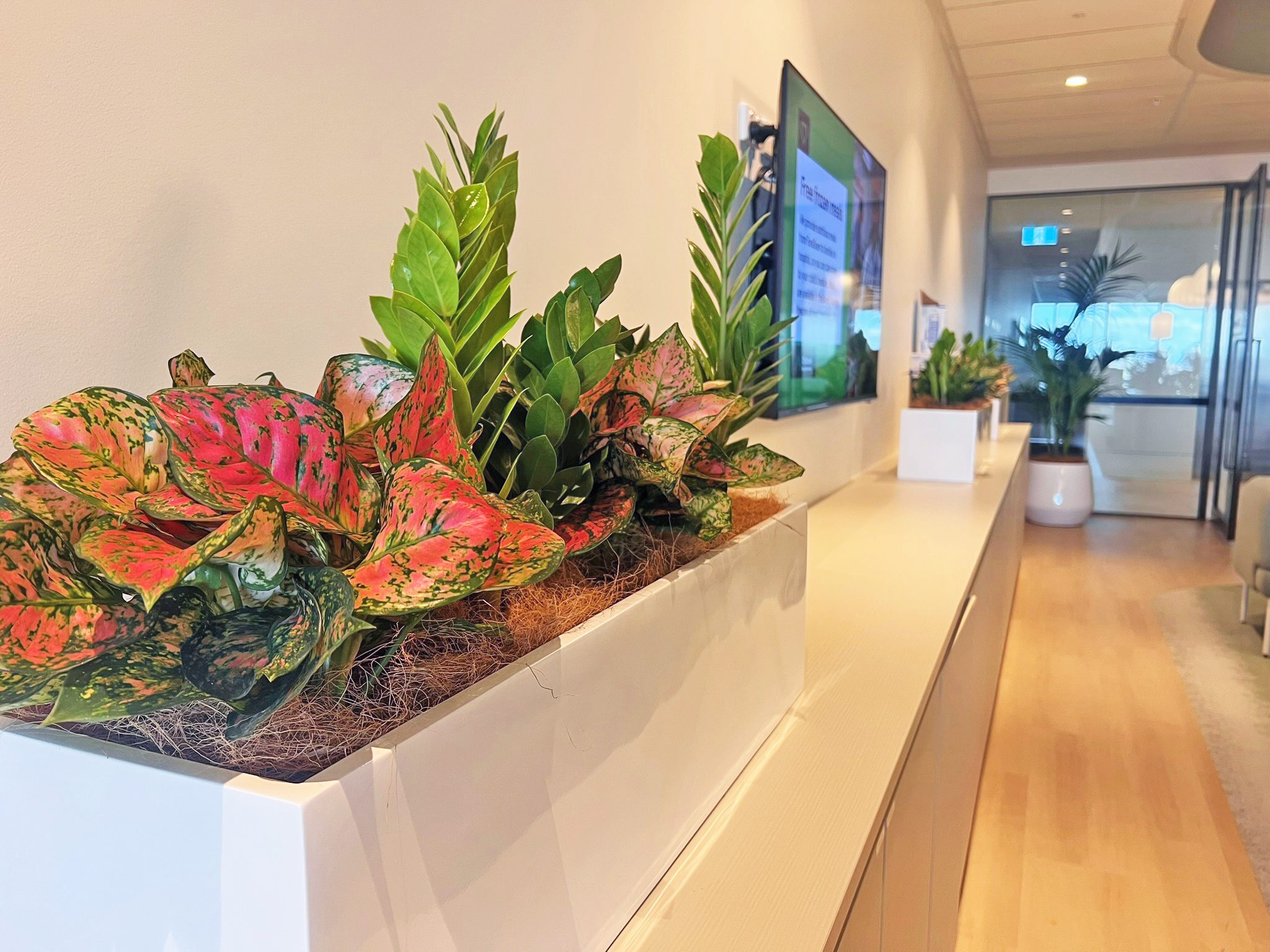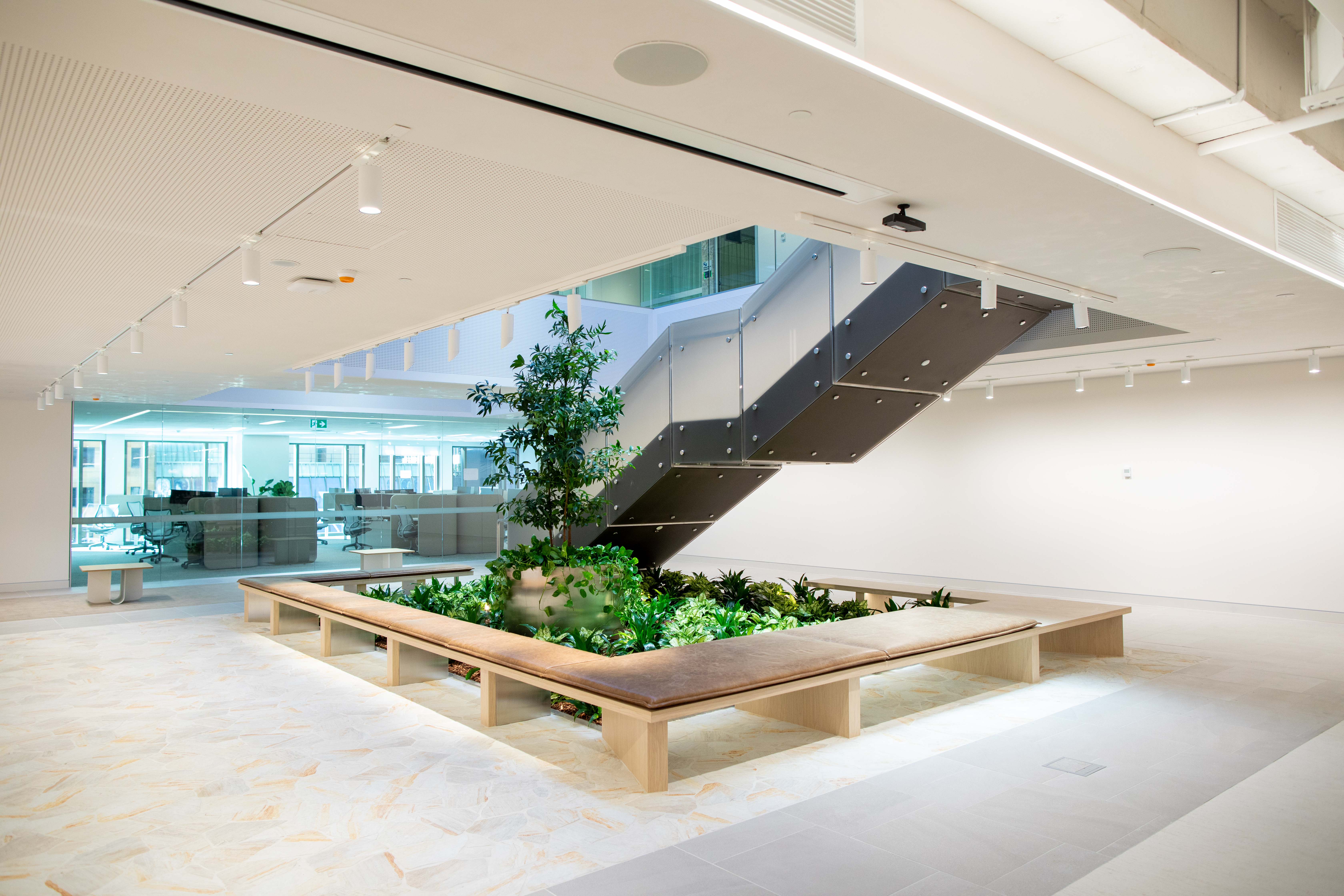 Tropical Plant Rentals worked closely with the client team for over twelve months during the design and planning stages to ensure the planting could be successfully integrated within the joinery design. Installation was staged late in the construction program to protect completed finishes and maintain the integrity of the curved timber elements. Access logistics, lift coordination and security protocols were carefully managed within the active CBD building to ensure a controlled and precise installation.